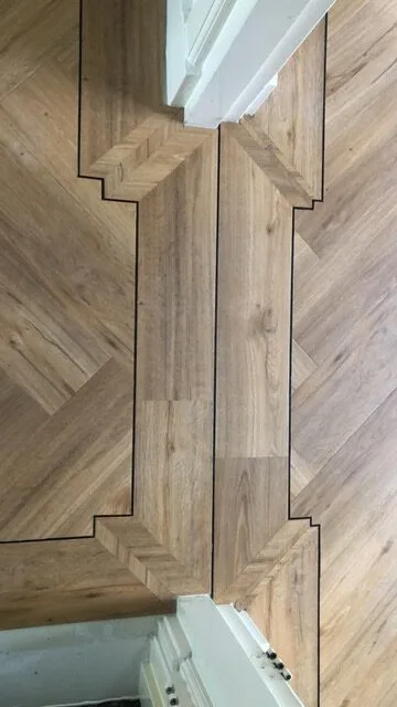 Visgraat vloer gelegd in woonhuis met subtiele randafwerking